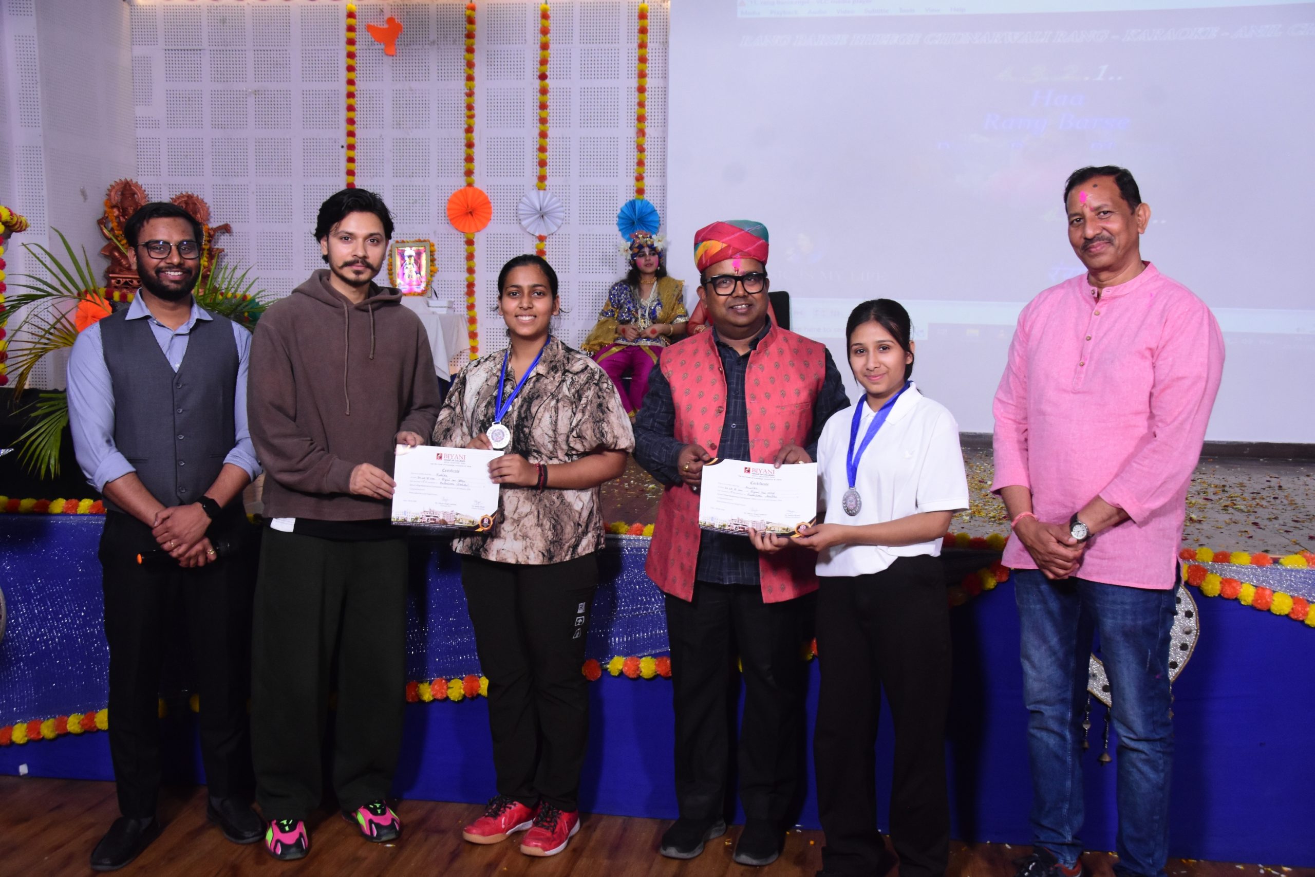 The Biyani Group of Colleges organised the colorful event “Braj Rang Utsav” on 28 Feb to celebrate the festival of colors Holi. The celebrations showcased the diverse cultural heritage of Braj and embodied the exuberant spirit of bonding. Students showcased Vivid Dance, Music, and Holi Songs of their respective Culture promoting Unity in Diversity that filled spreading a colourful essence to the campus. The event brought the essence of Braj culture to life, where colours, happiness and harmony permeate everywhere. Students and faculty members celebrated the festivity by smearing gulal, exchanging festival wishes, and taking part in cultural activities.