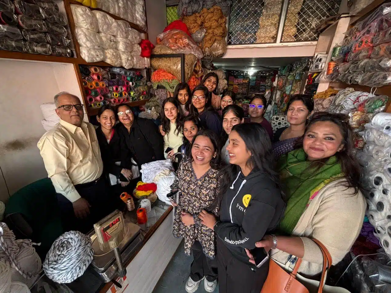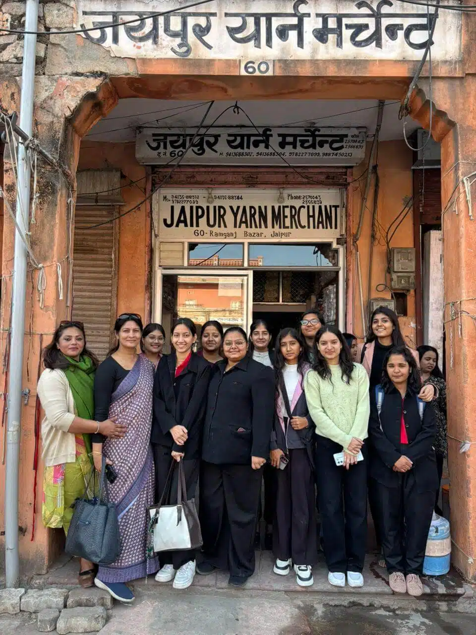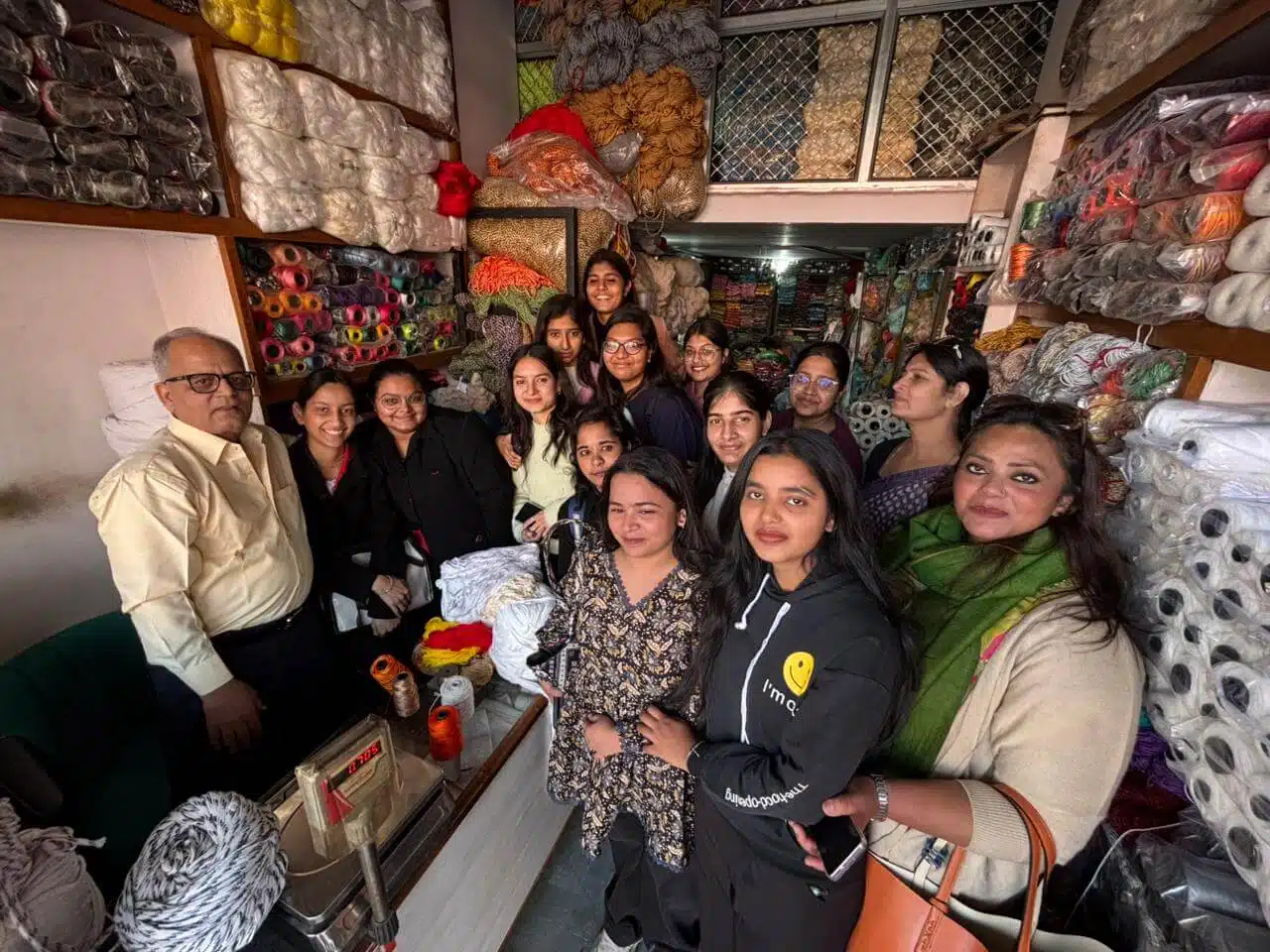 Students of the Department of Fashion Designing (Semester 1 & Semester 3) visited yarn merchants and manufacturers at Ramganj during college hours (9:30 AM to 12:30 PM). During the visit, students gained valuable knowledge about yarn materials, manufacturing processes, and market practices. They interacted with merchants and learned alongside their faculty members, making the experience both educational and practical. For many students, it was their first opportunity to visit such a location, making the visit memorable and enriching.