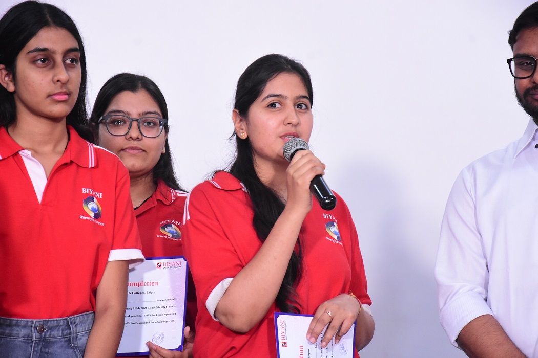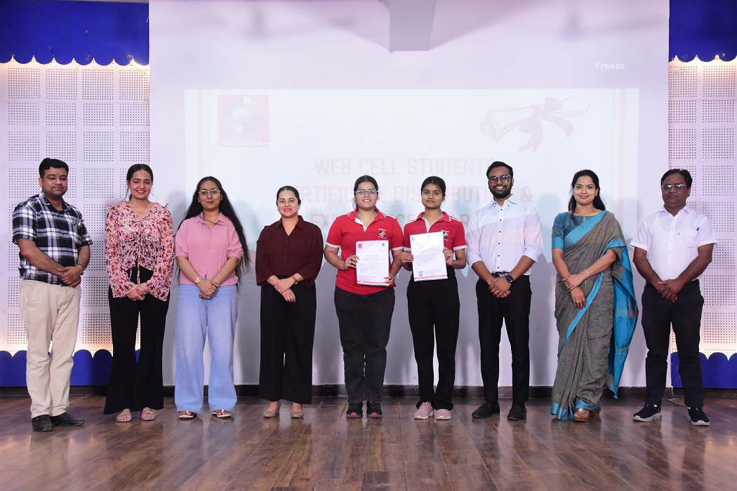 The Mega Certificate Distribution Ceremony was successfully organized at Utsav Auditorium, Biyani Group of Colleges, Jaipur, on April 4, 2026. The event celebrated the accomplishments of BCA students who completed 120-hour workshops on IBM by ICT and Linux, along with those who excelled in the Web Cell Internship.