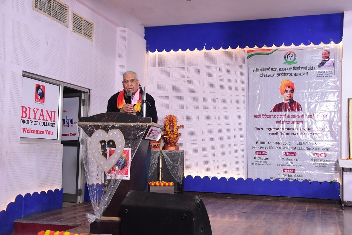At Biyani Group of Colleges to honor the teachings and ideals of Swami Vivekananda and to inspire the youth towards nation-building. The program focused on promoting values such as leadership, discipline, self-confidence, and social responsibility among students.